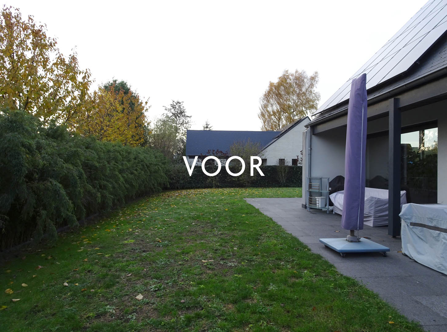 De trampoline is naar de zijkant van het perceel verplaatst, waardoor deze uit het zichtveld van de leefruimte is onttrokken.