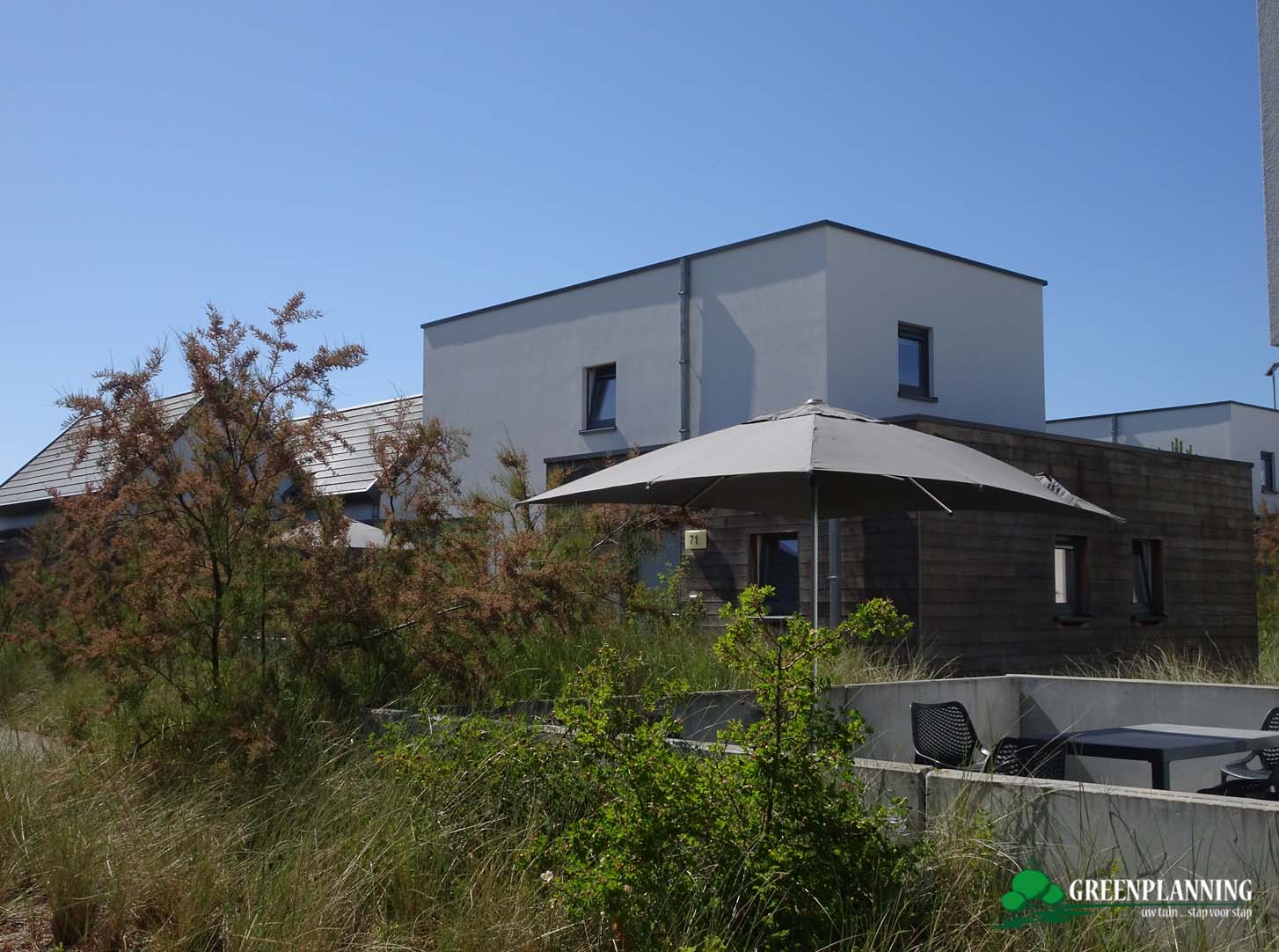 Om de beleving van duin, strand en zee te perfectioneren, zijn alle beplantingszones afgewerkt met een laag witte zeeschelpen. Dit voorkomt niet alleen verstuiving, maar zorgt ook voor die typische zilte sfeer tot aan uw voordeur. Verspreid over het domein vindt u diverse zithoeken waar u in alle rust kunt genieten van de streekeigen flora en fauna; een plek waar mens en natuur werkelijk centraal staan.