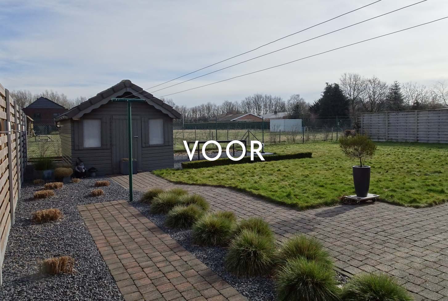 De bestaande situatie van dit project bestond uit een ruim gazon met een traditioneel tuinhuis en een onbenutte, verharde zijstrook.