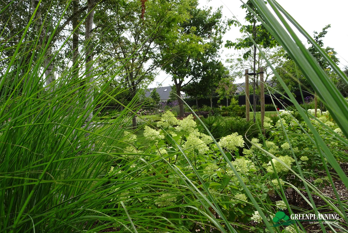 Een beplanting met een sterke belevingswaarde, met respect voor de bestaande bomen en groenblijvende heesters.