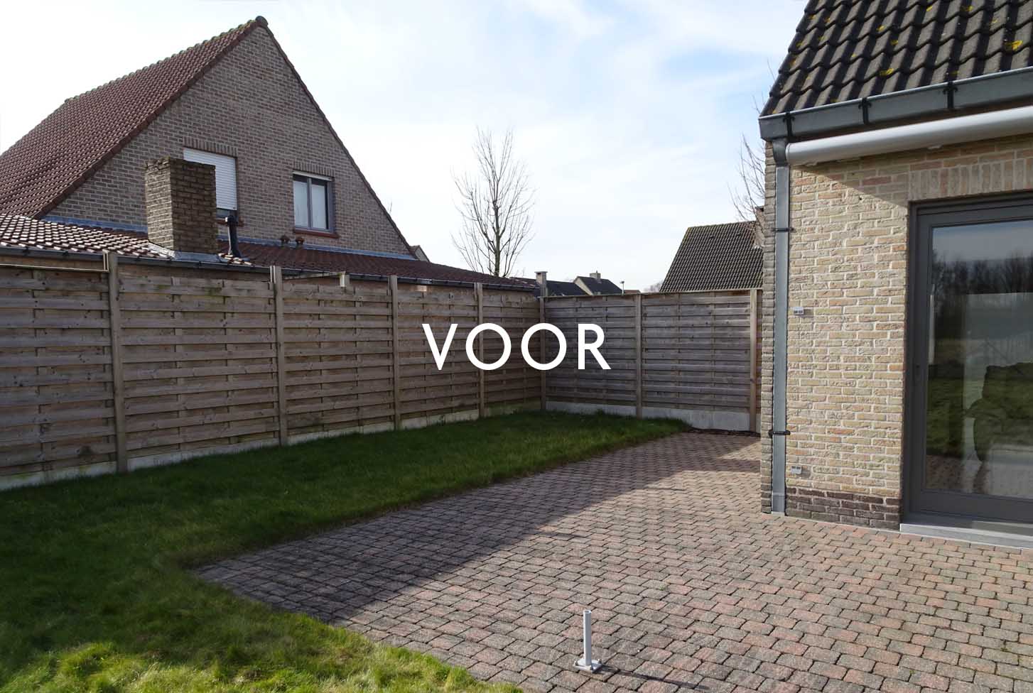 De bestaande situatie van dit project bestond uit een ruim gazon met een traditioneel tuinhuis en een onbenutte, verharde zijstrook.